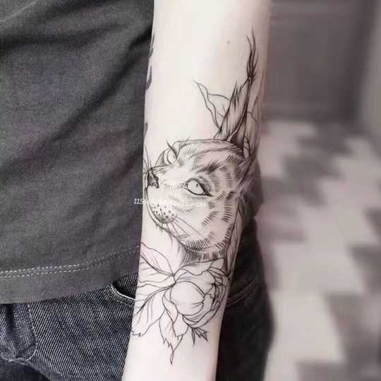 手臂线条猫刺青图案作品
